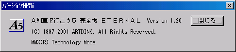 一方でETERNALの方は、マイナーバージョン20個目ということなのか1.20表記になっており、リリースが2001年頃のようですね。