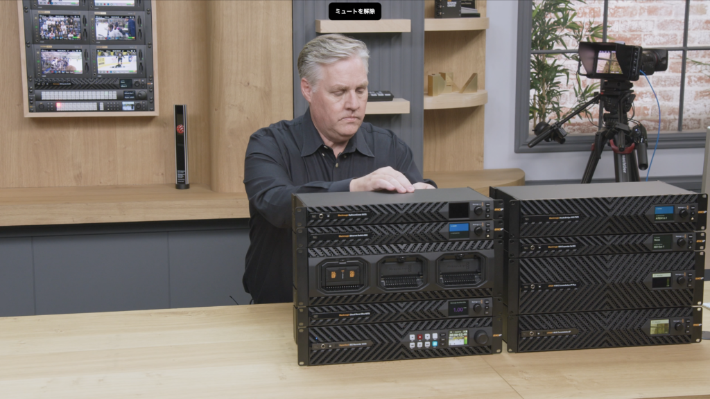 まず最初にIP仕様のATEM、スイッチなどが紹介され…